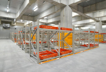 パレット専用流動ラック「プッシュバックラック」をチルド食品及び冷凍食品を保管する倉庫様に納品しました。